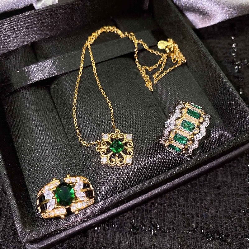 Design an emerald ring carved with lace quantity