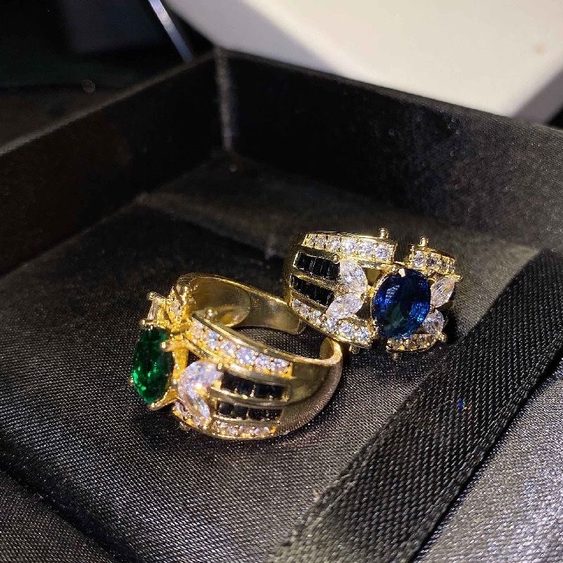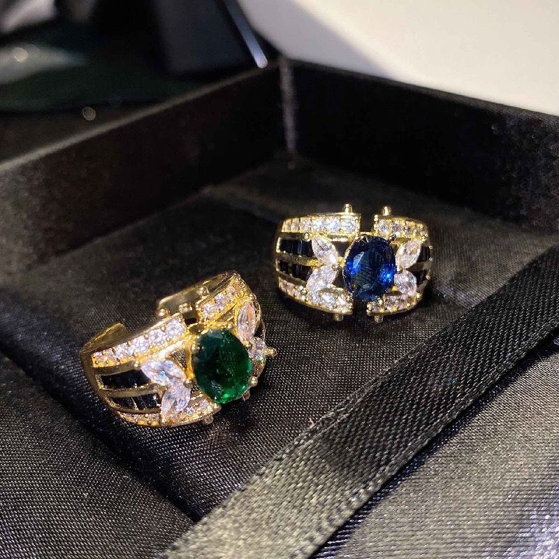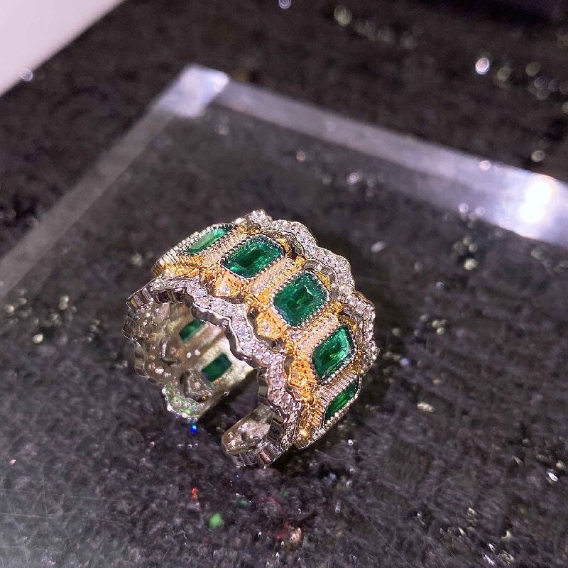 High-grade colorful emerald diamond-encrusted hollow ring
