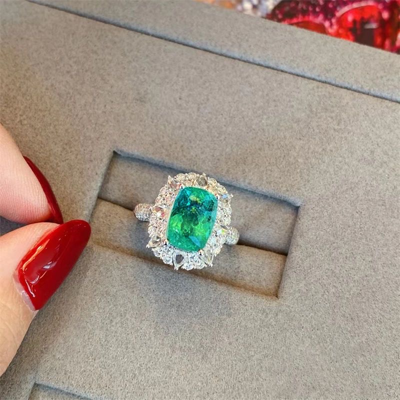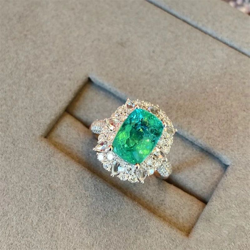 High-grade colorful emerald diamond-encrusted hollow ring