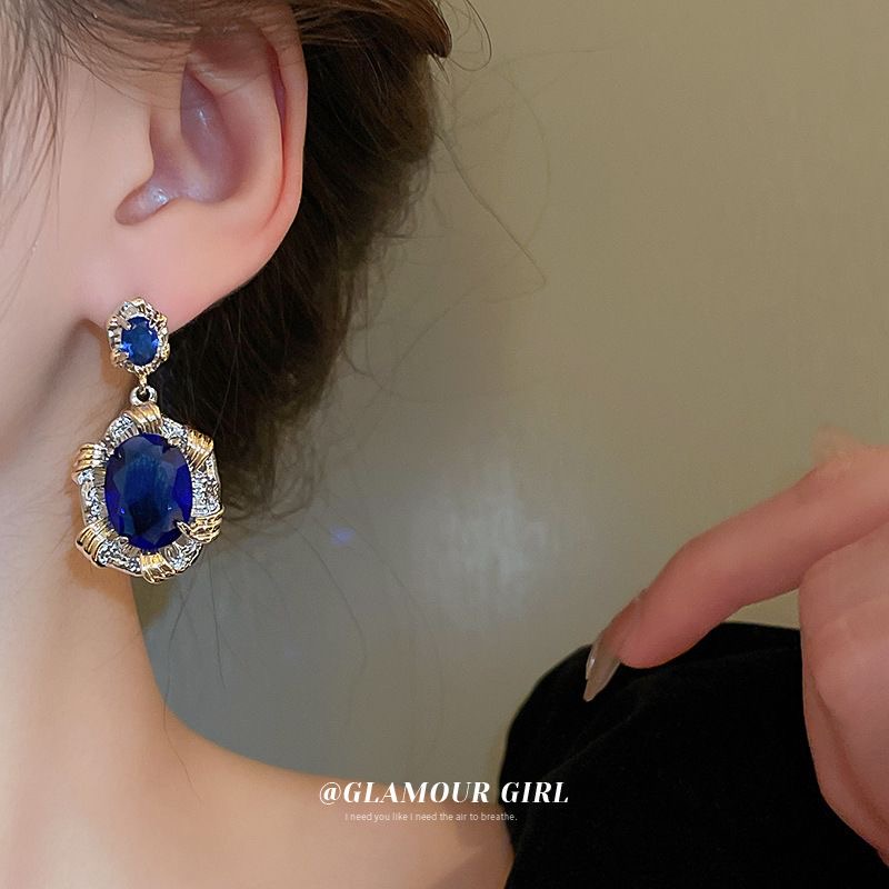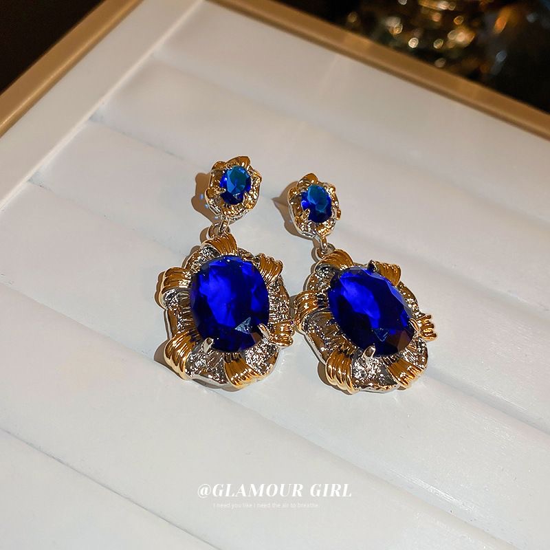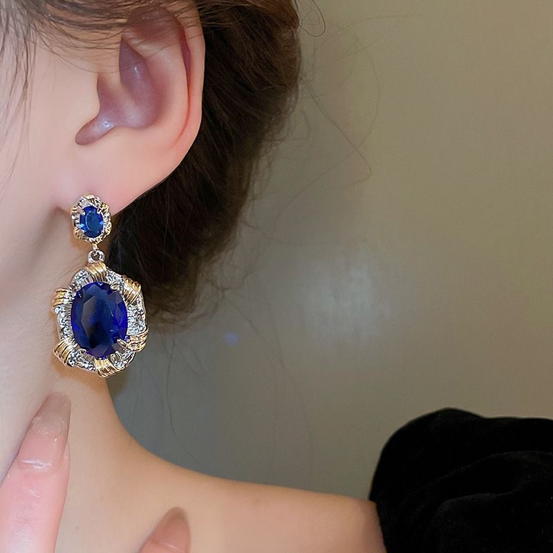 Luxury purple gemstone full rhinestone ultra-shiny earrings